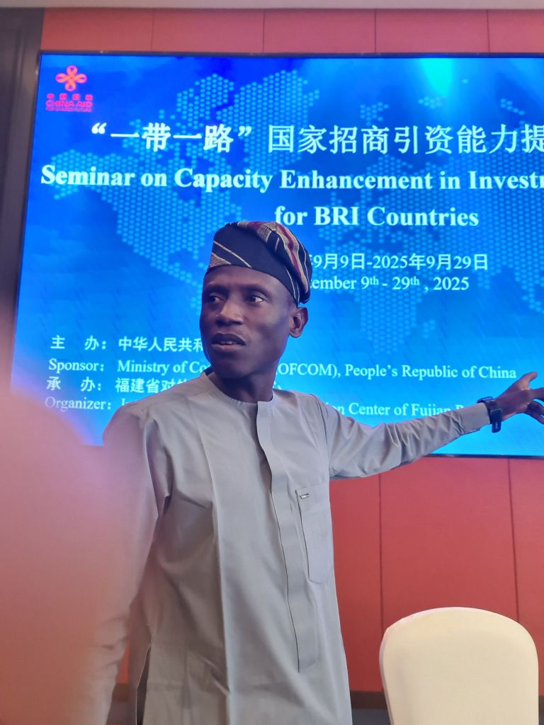High-Chief “Aare” Oluwasegun Oyedijo delivered a presentation on behalf of Nigeria at the Seminar on Capacity Enhancement in Investment Attraction for BRI Countries, organized by the International Economic Cooperation Center of Fujian Province.