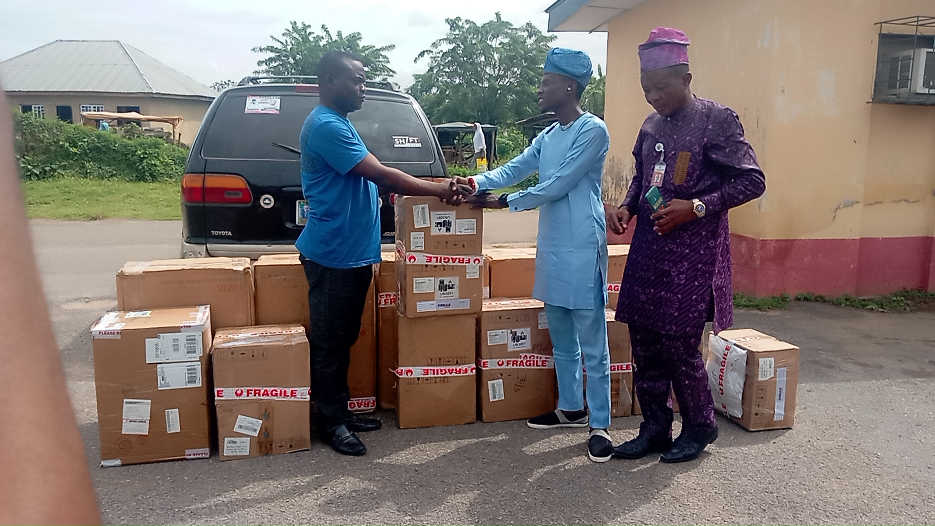 In the statement of Hospital Secretary M.O. Akande who stood in for the Hospital Head Expressed his gratitude to Aare Oyedijo in company of others at the handing over ceremony in company of Hon Ife Akande and A. Adebola